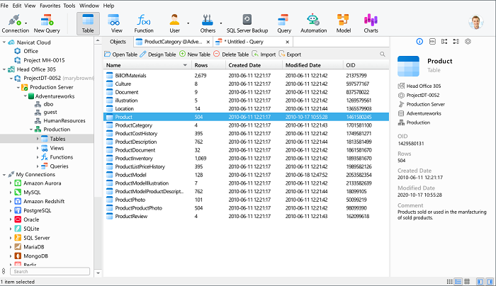Navicat Premium Full Version adalah alat administrasi database multi koneksi canggih yang memungkinkan Anda terhubung secara bersamaan ke semua jenis database dengan mudah. Navicat memungkinkan Anda untuk terhubung ke database MySQL, MariaDB, Oracle, PostgreSQL, SQLite, dan SQL Server dari satu aplikasi, membuat administrasi database menjadi sangat mudah. Anda dapat dengan mudah dan cepat membangun, mengelola, dan memelihara database Anda. Itu dapat terhubung ke server lokal dan jarak jauh, menyediakan beberapa alat utilitas untuk kolaborasi, transfer data, sinkronisasi data, impor/ekspor dan pencadangan/pemulihan, pembuatan laporan dan otomatisasi, dan banyak lagi. Navicat Premium Final sepenuhnya kompatibel dengan database lokal, jaringan, serta cloud seperti Amazon, SQL Azure, Oracle Cloud, dan Google Cloud.